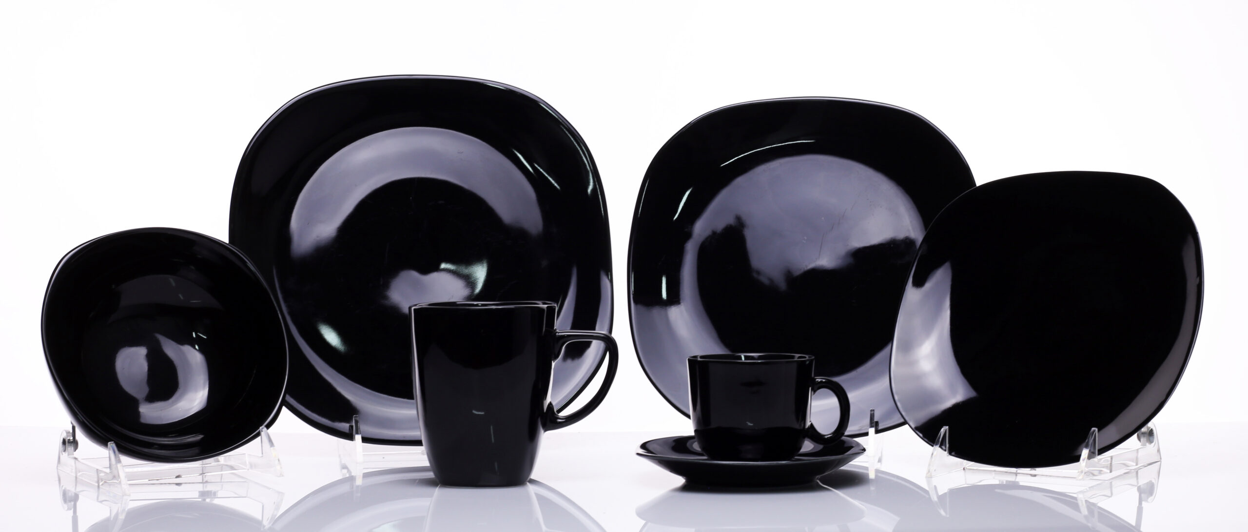 Chic + modern in design, the rounded edge square Black Fusion line is an ideal choice for event dining